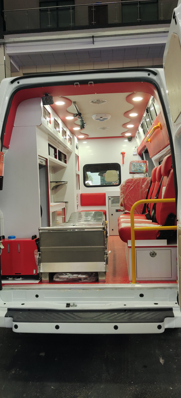 行车记录仪、燃油加热系统、双逆变系统、空气净化装置、负压系统、进口自动上车担架、自动担架、楼梯担架、车辆管理系统、除颤监护仪、多参事监护仪、唿吸机吸引器、输液泵、氧气瓶